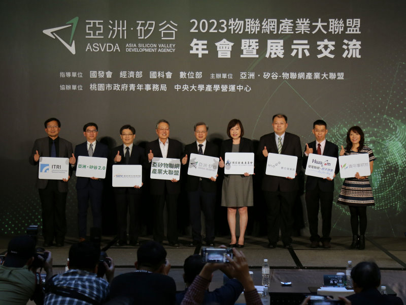 物聯網產業大聯盟於14日舉辦「2023物聯網產業大聯盟年會暨展示交流」活動,國發會龔明鑫主委、物聯網產業大聯盟施振榮榮譽會長、亞洲.矽谷計畫執行中心高仙桂執行長、陳宗權執行長、闕河鳴執行長、李博榮行政長、桃園市政府青年事務局侯佳齡局長共同與會,並邀請工研院蘇孟宗資深副總暨協理、華電聯網楊純福協理發表專題演講,同步分享拓展海外商機經驗。